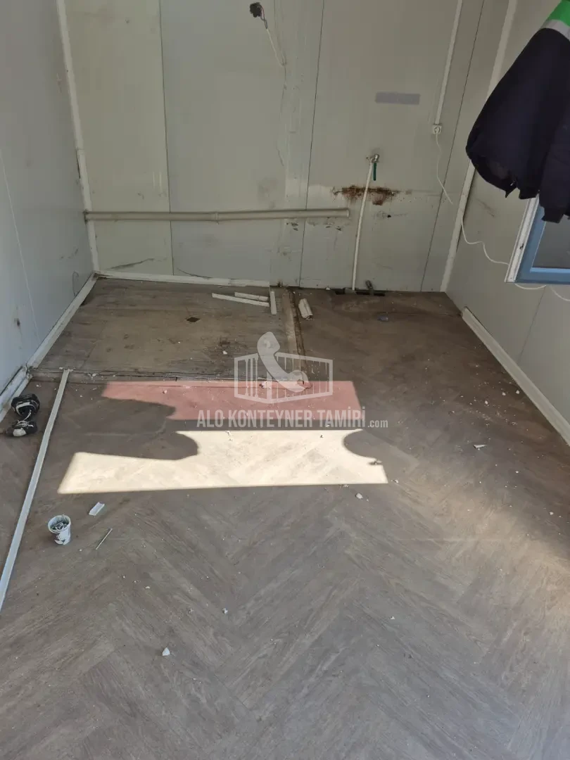 Gebze’de konteyner bölme sökümü ve mineflo zemin uygulaması Alo Konteyner Tamiri tarafından gerçekleştirilmiş, iç alanlar modern ve kullanışlı hale getirilmiştir.